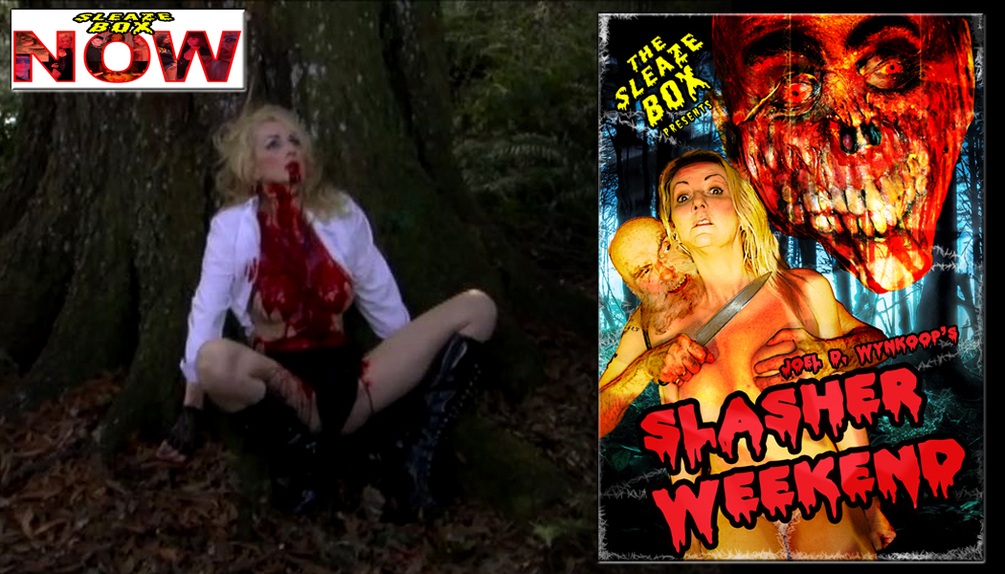 If you want a movie that is so ridiculous, so over the top and so politically incorrect then this is the film for you! Watch Joel D. Wynkoop’s take on the slasher genre with this horror comedy. Jenny (M. Catherine Holseybrook) and her gay friend Johnny (Andrew Vingo) plan a weekend in the woods, but Jenny’s sex crazed and homophobic boyfriend, Aaron (Wynkoop), is asked to come along, but is not happy with the weekend situation. Meanwhile there is killer in the woods slashing up hot naked babes and horny dudes. Will this maniac lurk his way to the cabin where the threesome is staying? You will laugh and scream when viewing this insane b-movie featuring a number of Sleaze Box staple actors. Enter the bloody woods and get ready for SLASHER WEEKEND!